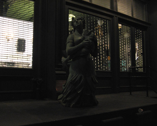 A newly LASIK-ed SK joined us at the Pound & Pence after work to toast KG’s recent success. I slipped out after the first congratulatory round to make the early curtain at the Met. Tonight: the double-bill of Pietro Mascagni’s Cavalleria Rusticana (Rustic Chivalry) and Ruggero Leoncavallo’s Pagliacci (Clowns), a combo commonly referred to as “Cav and Pag.”