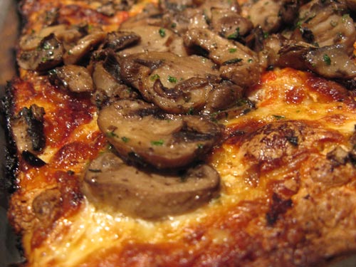 The Village Voice dubbed Adrienne’s the “Perfect Downtown Pizza” — and indeed, our thickly mushroom-topped pie arrived perfectly hot and crisp, with superbly charred crusts and creamy, fresh mozzarella over bright, tart sauce.