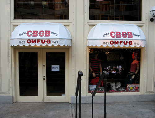 And down the block, the CBGB-OMFUG Shop opened at last, lest we forget that the club was once a relevant rock-institution on the Bowery. And if you’re looking to own a piece of rock n’ roll history — yes, an actual 12′ x 13′ piece — you can find it on eBay(!) But hurry: bidding closes at 19:26:49 PST on January 17.