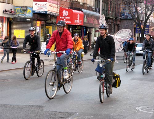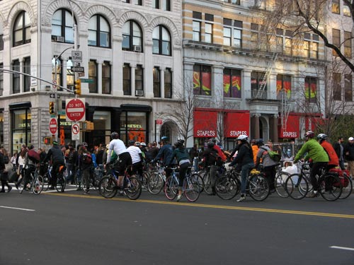Dozens of cyclists paid tribute to the 14 cyclists killed by motorists in 2006, visiting each of the accident sites in a citywide ride organized by pro-cycling groups Time’s Up and Transportation Alternatives.