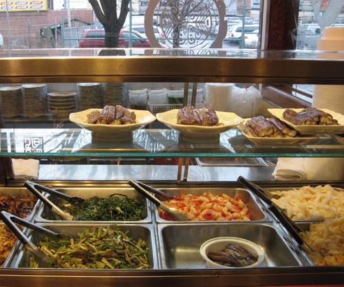 We briefly assessed the cold appetizer displays up front: dishes of tendon (or “tender” as it appeas on the menu), Chinese eggplant, shredded bean curd, smoked fish, tripe, seaweed, bamboo shoots, bitter melon, jellyfish…