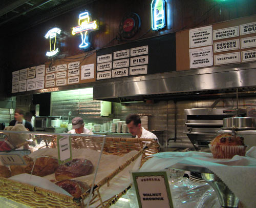 Afterwards, a post-show dinner of steamed pierogis at Veselka for their touted “Ukrainian soul food in the heart of the East Village.” The sign posted outside advised diners that the 24-hour restaurant would be closing that night at 11PM for its monthly cleaning.