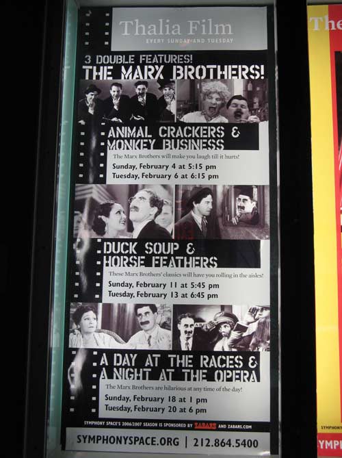 I inadvertantly spoiled everything by figuring out our destination just as we were setting out — probably because I already had the Marx Brothers on the brain. SYB seemed so crestfallen that I was tempted to continue claiming ignorance, but I sensed that my acting skills wouldn’t quite hold up during the long subway ride into Manhattan.