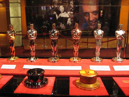 Included in the “Meet the Oscars” exhibit were two statuettes previously owned by Hollywood legends Bette Davis and Clark Gable. Academy Award winners are required to sign a waiver, preventing them from ever selling their award. To dispose of an unwanted statuette, owners must sell it back to the Academy for $1. Oscars awarded before 1950 — including the two on display here — are exempt from the rule. In 2001, Steven Spielberg paid $578,000 for the Oscar Davis won for Jezebel in 1938, with the express purpose of returning it to the Academy. Five years earlier, Spielberg bought Gable’s 1934 Oscar (for It Happened One Night) for $607,500, returning that statuette to the Academy as well. (Each of these was a relative bargain compared to the $1.54M Michael Jackson paid at auction for David O. Selznick’s producing Oscar for Best Film Gone With The Wind (1939).