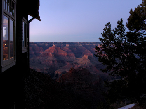 Once at the park, we checked in at our Lodge, and headed straight to the Bright Angel just in time to register for our mule rides the following morning. After clearing our required weigh-in, we collected our canteens and bright yellow “Mule Rider” windbreakers, and then spent some time exploring the South Rim trail, just taking in our surroundings.