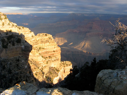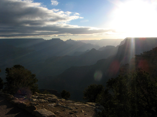 Our final day started well before dawn, as we dragged ourselves achily from our toasty beds to catch the sun’s rise over the Canyon. The Park sponsors a “Surnrise” bus tour, but J and I decided to explore for ourselves.