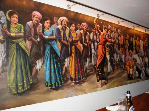 The loungey, low-lit space was clean and modern, with just a hint of Bollywood kitsch. These murals just beg for a backstory, no?