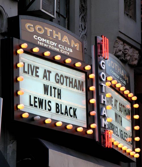 After a chilly wait outside the Gotham, we were ushered inside the comedy club. Tonight we were there to tape an installment of Comedy Central’s Live at Gotham, hosted by “America’s foremost commentator on everything,” Lewis Black. Black is a stand-up comedian, playwright, and author, but is probably best recognized for his regular “Back in Black” commentary segment on The Daily Show. After delivering his own performance, Black introduced a slate of half a dozen solidly fine and fiercely funny stand-up acts. It was good to laugh, and laugh we did.