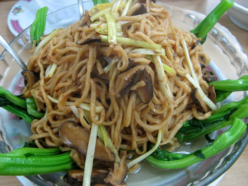 Great dish: chewy noodles, tossed with shiitake mushrooms and yellow chives and ringed with choy sum stalks — in fact, it’s the one recommended by the Village Voice, though we didn’t know it at the time.