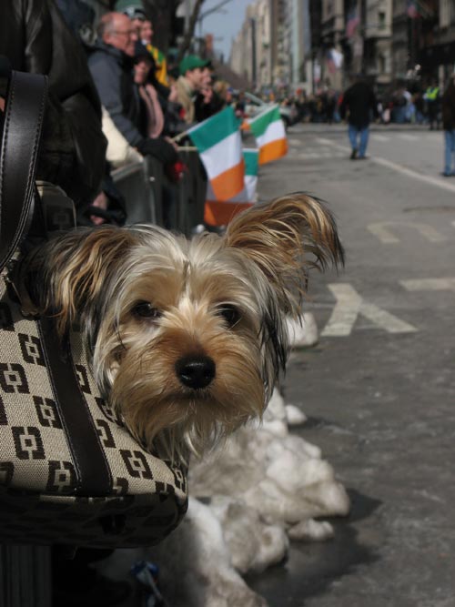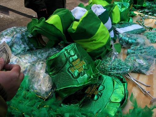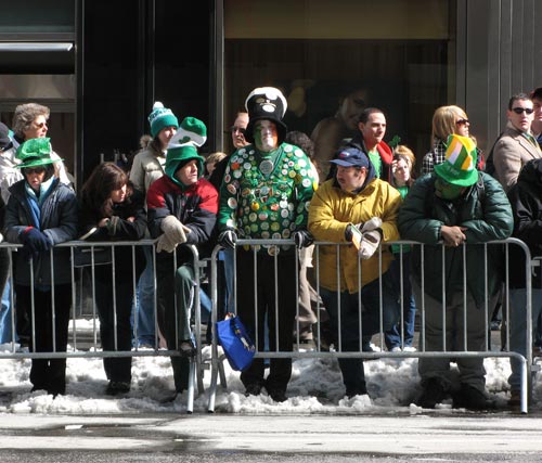 Anticipated attendance hovers around 2 million, converting the streets uptown into a sea of green, white and orange, as the echo of endless bagpipes played through the air. Spectators lined the streets tricked out in green hats, green boas, flashing green necklaces, green braids, and in some cases, green face paint. My new boots proved their waterproofability as I stood behind the police barriers in four inches of icy slush — so really, they were entirely worth it. Really.