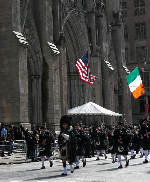 According to the information website, the city’s first St. Patrick’s Day parade was organized in 1762 by Irish soldiers serving in the British army. The early marchers would form up at their parish churches or their organizations’ meeting places and march to the Old St. Patrick’s Cathedral — the oldest Roman Catholic church building in the city, still at Mott and Prince Streets. As the City and the Cathedral moved uptown so did the parade.
