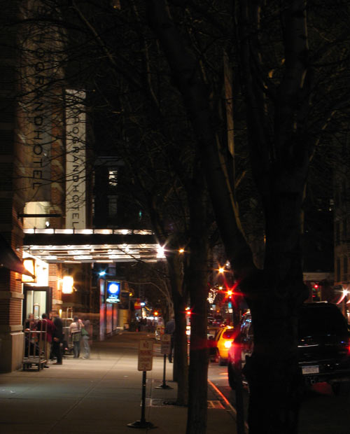 Afterwards, a syrah for me, a gin buck for M at the pet-friendly SoHo Grand. (Ah, that explains the dog statues in the lobby and the dog trough at the door.)