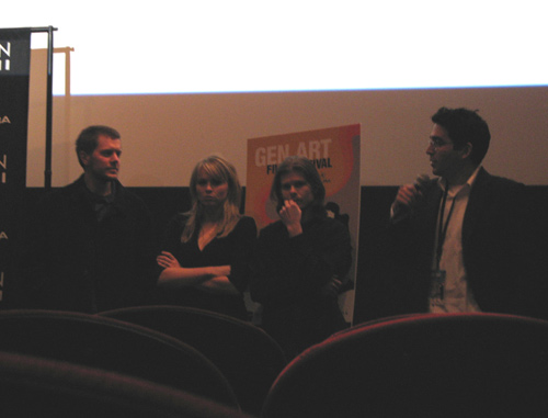 At the Gen Art Film Festival for a screening of When a Man Falls in the Forest. I don’t know that this film was ever released in theaters. Not surprising, given the rather trite material, but it seems a pity that more people won’t get the chance to see the brilliant (and brutal) scene where Timothy Hutton’s character leaves a rambling, pleading confessional voicemail message for his estranged wife (Sharon Stone). It’s all done in a single lingering close-up take — and though it feels too real to have been entirely scripted, we learned this night that it was. Every word.