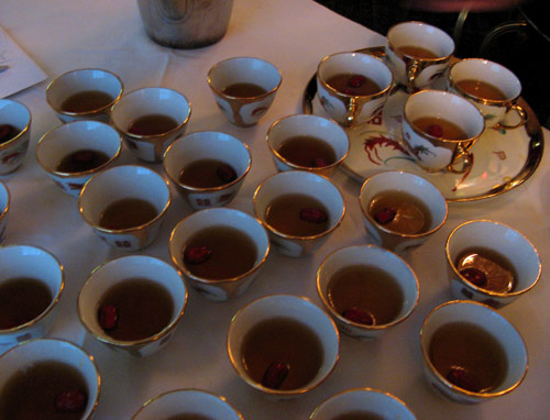The day passed in a whirlwind: the blooms, the groom’s tears, little boys in tuxedos, our maddeningly temperamental GPS, the tea ceremony, the toasts, the three-tiered wedding cake (cut with a naval officer sword!), the bride in her red cheongsam, the new couple’s first dance…
