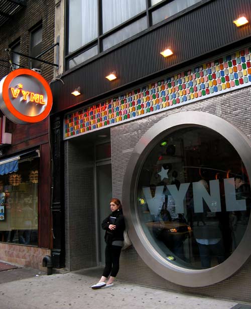 Dinner at Vynl, part of restaurateur John Dempsey’s Hell’s Kitchen empire. Originally opened in 1996, Dempsey’s cozy-kitschy diner relocated three blocks south to a larger space on 51st and Ninth, clearing the space for his other neighborhood holding, El Centro, in 2006. The new, improved Vynl is as popular as its predecessor was; this Friday there was a queue for a table at the improbably early hour of 6:30PM. Luckily, the new digs created space for an ample front bar, where a friendly bartender ladled out tall glasses of happy hour sangría to ease the pain of waiting.
