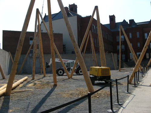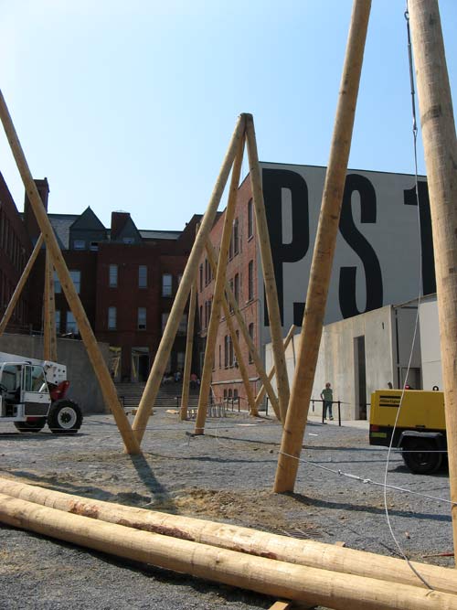 We rounded out our day with some museum-sponsored art at the P.S.1 Contemporary Art Center, where my MoMA dual membership came in handy. Out front, the museum’s annual architectural installation, designed by the winner of the annual P.S.1 and MoMA-organized Young Architects Program, was being constructed for this summer’s Warm Up series to run ten Saturdays — June 30 through September 1, 2007.
