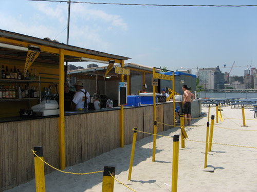 After a couple of coffees at Cafe Henri, we wound our way west past quiet warehouses and construction sites, during which B and I did our best to explain the concept of the “beach” retreat to our British friend: tons of trucked-in sand dumped onto a lot overlooking Midtown Manhattan, set up with picnic tables, bar and grill stand, and DJ booth. Is there any finer fake beach in the world?