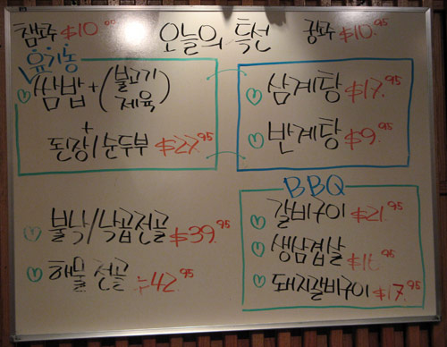 Our party this evening was about half the size it was at the previous Korean barbecue outing, but without the ordering restrictions in place for our last visit to Kunjip, we delved pretty well into the extensive menu.