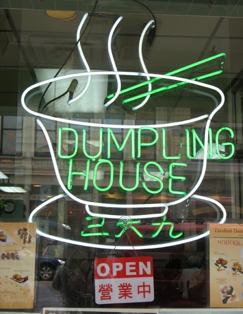 We chose this spot for Thursday’s lunch primarily for its proximity to the Canal Street subway station. The name of this unassuming restaurant on Lafayette is Excellent Dumpling House, though the neon signage in the front window modestly indicates just “Dumpling House. ”