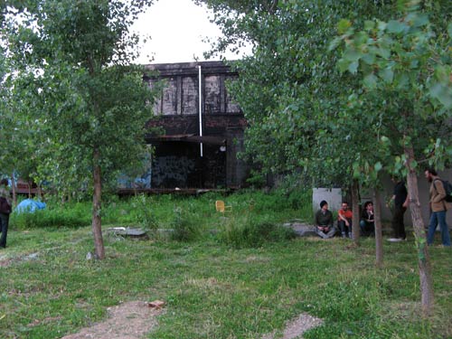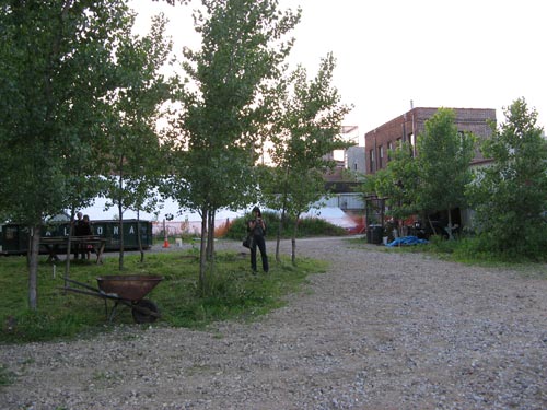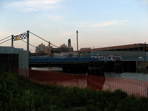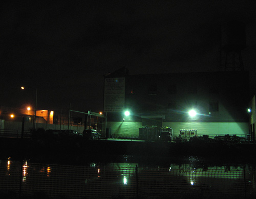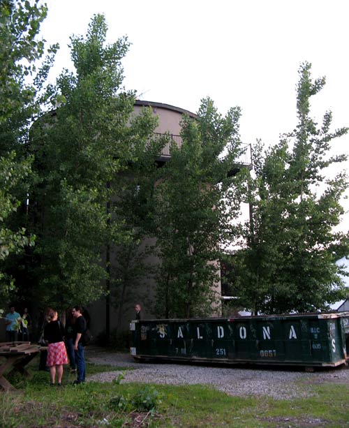 The performance tonight was a last hurrah of sorts for this entirely distinctive performance space off the Carroll Street Bridge; the IPR, which since June 2005 has been devoted to innovative projects and multidisciplinary, experimental art and cultural events, will be closing on June 30 due to landlord issues and a pending shutdown of the canal for cleanup. We entered in through an imposing black metal gate, hung with a wooden arts-and-crafts style sign and entered a field of gravel, grass, weeds and trees alongside the brown-green waters of the Gowanus Canal.