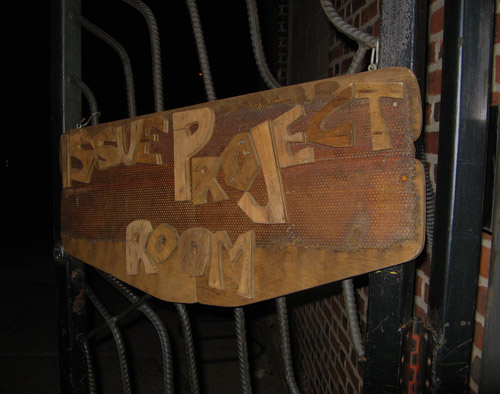 The performance space itself is a two-story converted oil silo; another adjacent silo houses artists studios. We entered the ground floor bar, past the large metal dumpster, where IPR volunteers were pumping out plastic cups of Brooklyn’s finest beer from a keg. No, we were informed emphatically: not Brooklyn Brewery, but Six Point Craft Ales – “We are 100% Brooklyn!”