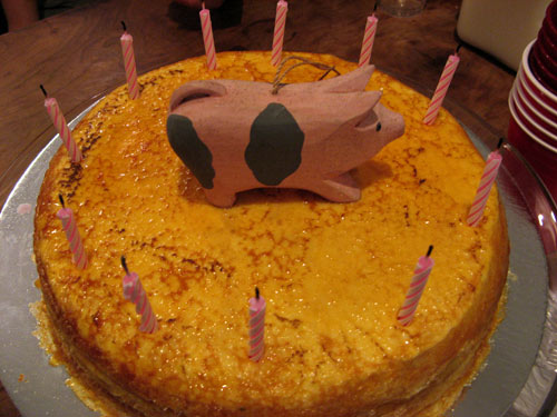 The long- coveted and precious (definitions 1, 2 and 3) Lady M Mille Crêpes cake, with its 22-23 dazzling layers of crepes and cream. (The wooden piggy was a bonus.):