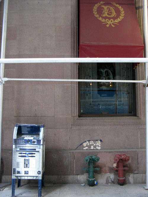 And just down the block, tucked beneath the scaffolding enveloping Delmonico’s Steak House: another random sighting from a long time ago, in a galaxy far, far away.