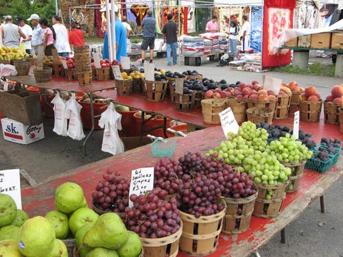 Forty acres of open-air field were divided along rows with names like “Canal Street,” “Times Square,” and “Fifth Avenue.” The ambience was a mix of tag sale, Jersey Fresh farmers market and one of the less-exciting NYC street fairs with its fried foods — even a BBQ truck! — cotton tube socks, cell phone accessories, rugs and brassieres. Five larger buildings (identified by color: brown, yellow, red, blue and green) housed up to 300 additional merchandise and food vendors, though the booths this morning were only half full.