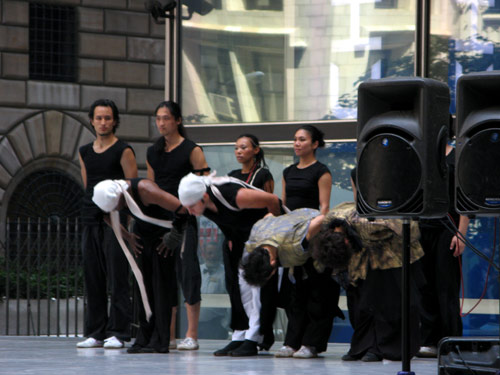 New York City-based Spinnin Ronin Dance Company was the final troupe to perform at this year’s festival. Their segment was described as “Martial Arts Dance Theatre.” Director/choreographer Tsuyoshi Kaseda conceptualized a fantastical story (narrated in voiceover) around which he arranged choreography, fusing elements of modern dance, acrobatics, martial arts and traditional dances of China and Japan.