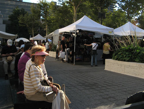 I spent some time exchanging beach tips for restaurant recommendations with a couple of ivory vendors (whale and mammoth, mostly) who traveled all the way from Hawaii to sell here. I was a bit surprised that a trip from so far away would be worthwhile, until I scanned the application (.pdf) vendors submit to sell at Lincoln Center, which claims that average sales per booth usually exceed $6,000 per weekend.