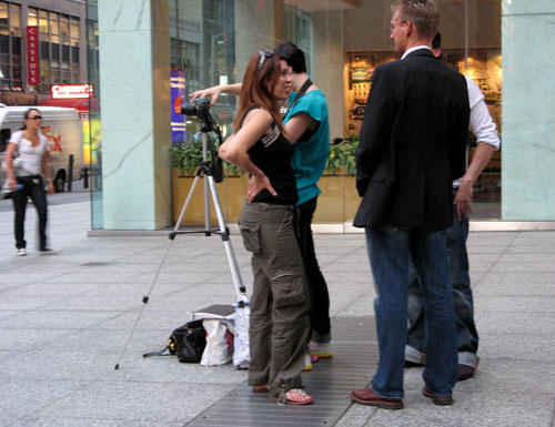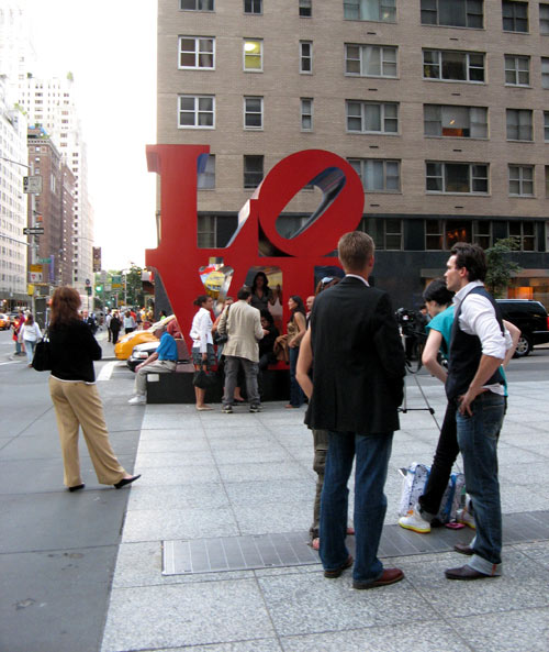 UK photographer Suzannah Pettigrew, best known for her concert photos of such music artists as De Le Soul and Timbaland, was in town to capture the spirit of the scene as it unfolded. Using a fixed tripod, Pettigrew took one photograph every minute for one full hour, as random people gathered around the LOVE sculpture — some aware of the project in progress, most not. The photos were later compiled and edited into a 4-minute slideshow set to music.