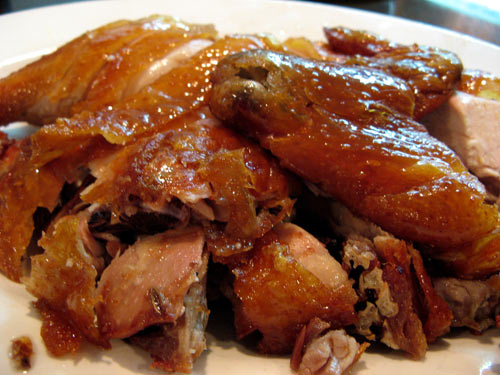 As expected, service is no-nonsense and extemely brisk. Less expected: the last time we were here, the servers began clearing the table around us while we were still in the middle of dessert. The food, though, makes up for a multitude of service sins. Among our dishes tonight: Chinese fried chicken. Very different from Korean fried chicken, and I imagine from Japanese fried chicken… though I’ll be able to confirm the latter in a couple of weeks.