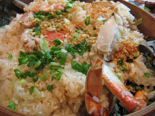 And my new favorite dish: the Dungeness crab steamed with sticky rice. It’s one of Imperial Palace’s signature dishes; a scan around the room revealed a lotus leaf-lined bamboo steamer on almost every table. The preparation seems simple enough, but every ingredient melds together beautifully: the savory juices of the large crab (or alternatively: lobster) steep into the glutinous rice, which is tossed with rice wine and topped with generous handfuls of chopped scallion and fried garlic. Divine!