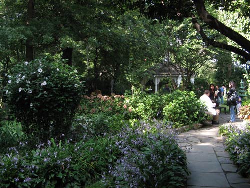 The house tours were being led in groups of about a dozen by the owner/savior of the house, Marion Duckworth Smith, nicknamed “Lady Legacy” (to her husband’s “Lord Legacy”) by Parks Commissioner Henry J. Stern. Before our assigned time slots, there was ample opportunity to explore the grounds of Paradise Acre: gardens, gazebo, gingerbread house and cemetery.