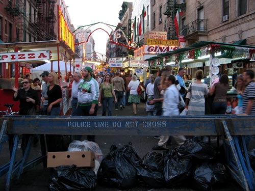 On the way to dinner this evening, I passed through the largest and most famous of the New York City street festivals: the Feast of San Gennaro. For eleven days in September, this sprawling, chaotic celebration — now in its 80th year — takes over Mulberry Street from Chinatown/Little Italy to SoHo.