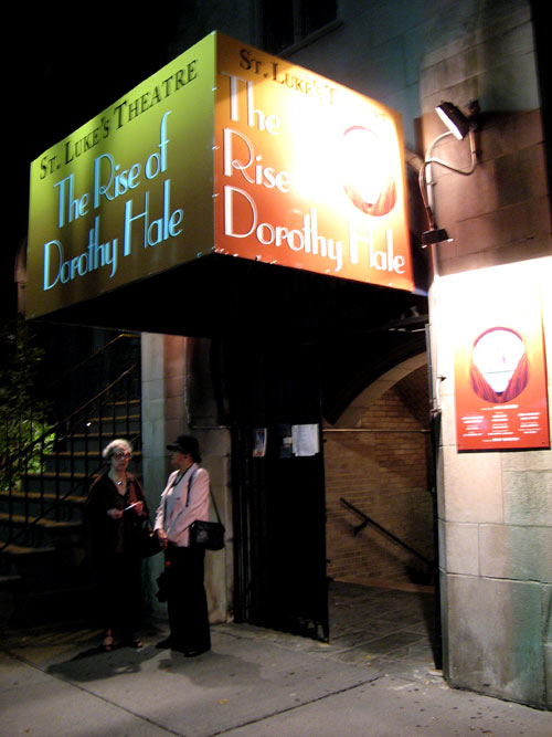 Was that the actual painting mounted on an easel inside the theater lobby, surrounded by framed news clippings and personal correspondence between the playwright and Hale’s niece Penny Weeks? Or a clever replica? The latter seems more likely, but I couldn’t say for sure.