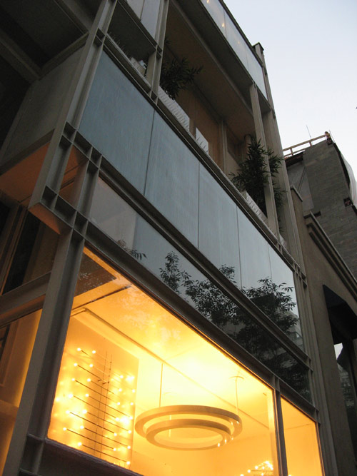 Rudolph lived in a four story, 17-level space at 23 Beekman Place, but in 1989, the architect and his longtime companion, Ernst Wagner bought the then-commercial structure we were visiting tonight with the intention of converting it into rental units. The space took 14 years to fully realize — the last of the glamorous city apartments Rudolph designed — during which the architect fought his long, fatal battle with mesothelioma. He left the townhouse to Wagner, who oversaw the completion of the upper duplex after Rudolph’s death. It is there that Wagner now resides, in a space which doubles as the seat of the Paul Rudolph Foundation, a nonprofit group that seeks to perpetuate Rudolph’s design ideas. Modulightor, the innovative lighting company Rudolph and Wagner founded, occupies the building’s first two floors. (Those showrooms were completed in 1996, a year before Rudolph’s death.)