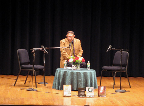 Authors Jaime Manrique (pictured below) and Sonia Sanchez (minus her signature dreads: she cut them off after a debilitating bout with the flu a few months ago) offered the welcoming remarks and introduction before ceding the stage to the three readers who would be excerpting the winning works.