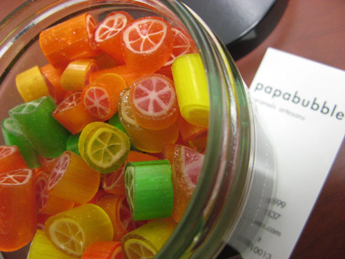 This citrus variety tasted clean and bright: tangy, but not mouth-puckeringly so, and without the cloyingly artificial flavors that mar lesser candies. Completely addictive, too. I realized I’d overindulged when by day’s end, the roof of my mouth had that tell-tale rawness I hadn’t experienced in perhaps two decades. (Thanks for the sweet surprise, SYB!)