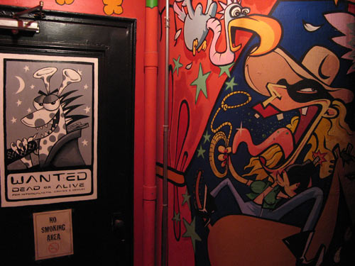 Depending on your perspective, it’s either really fun, or really freaky–as if the old St. Mark’s Place exploded indoors… but without the crack vials and urine stench. Certainly not like any hotel I’ve ever seen or stayed in. And definitely “not for the fainthearted or the humor-free.”