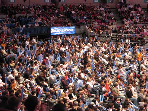 A sea of Knicks fans waving thundersticks behind the Orlando basket; the Magic still shot 82% from the line to the Knicks’s 76%: