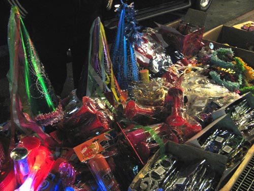 We convened after work at Grand Central Terminal for tonight’s gathering in Tudor City. Are kooky glittered “2008” glasses required to ring in the new year properly? Indeed they are.