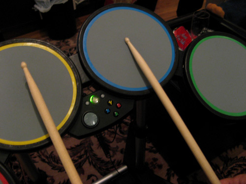 The song selection is what you’d expect: as a group, we put together some rousing renditions of the Rolling Stones’ “Gimme Shelter,” David Bowie’s “Suffragette City,” The Ramones’ “Blitzkrieg Bop,” Rush’s “Tom Sawyer,” (check out this crazy Rock Band drumming action), The Clash’s “Should I Stay or Should I Go,” Metallica’s “Enter Sandman,” Nirvana’s “In Bloom,” The Beastie Boys’ “Sabotage,” The Killers’ “When You Were Young” … and a whole lot of songs I didn’t know. Yes, I have an embarrassingly large gap in my musical repertoire when it comes to classic rock. I pitched in on vocals on Radiohead’s “Creep“ until on a lark, I took up the wooden sticks and discovered that I may be a drummer at heart. Not a good one, mind you, but a drummer just the same.