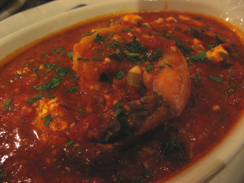 And one of tonight’s specials: the Shrimp Santorini (large, white shrimp, smothered with fresh tomatoes garlic and feta). After seeing the waiter bring out my dish, a man at the adjacent table ordered the same.