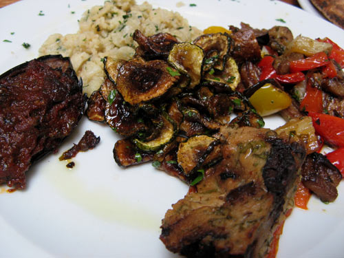 The Antipasto Salernitano Caldo: Stuffed peppers, eggplant & zucchini scapece & cauliflower: