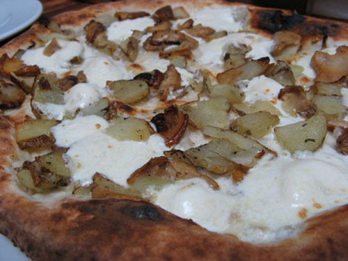 The Patate e Porcini pizza: Fresh mozzarella, sliced potatoes & porcini mushrooms: