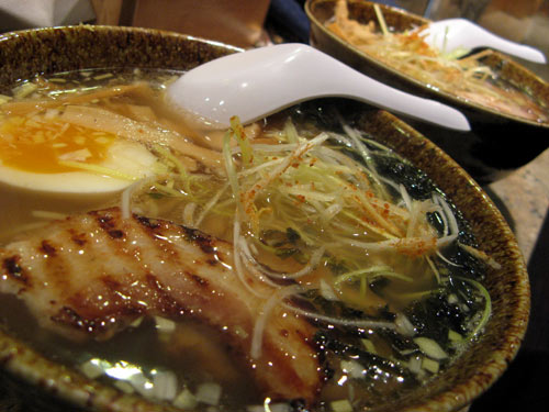 After such depressing fare, we went in for the comfort of ramen noodles. Months ago, we were thwarted in our first attempt to visit much-hyped Ramen Setagaya; this time out, the newness had worn off sufficiently for us to be seated with no wait. (Well, also, it was 10:30PM.)