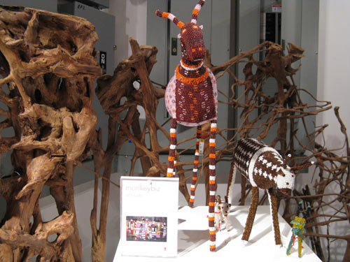 Beaded animals from Monkeybiz, a non-profit, income-generating art and health project, which combines tradition and empowerment for women from the poorest townships of Cape Town, South Africa. Monkeybiz supplies the raw materials, and the women involved in the project – currently about 450, many infected with HIV – create the artwork and are paid for each piece they produce. Proceeds go to the artists’ families, and to support health and wellness services in their communities. Check out the documentary Bigger than Barbie for more information about the project.