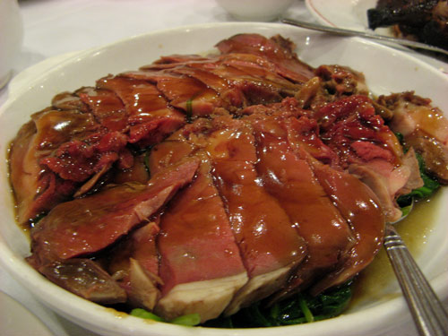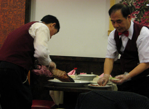 It’s been ages since we ordered an entire peking duck. These days, I get my fix from the occasional buffet visit or from Corner 28 on Flushing’s Main Street, where individual roast duck — not true Peking duck — sandwiches are sold out of a sidewalk window for 75 cents apiece, which inevitably lacks the pageantry of tableside carving and assembly.