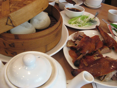 Since that first visit in January, we’ve been averaging a trip to Amazing 66 on Mott Street every couple of weeks. At the restaurant this Thursday afternoon, we had the serendipity to stumble upon the high-powered board meeting of new Asian American literary journal Kartika Review, i.e., our friends RL and SL. If there is any better way to conduct business than over a whole Peking duck, I do not know it.